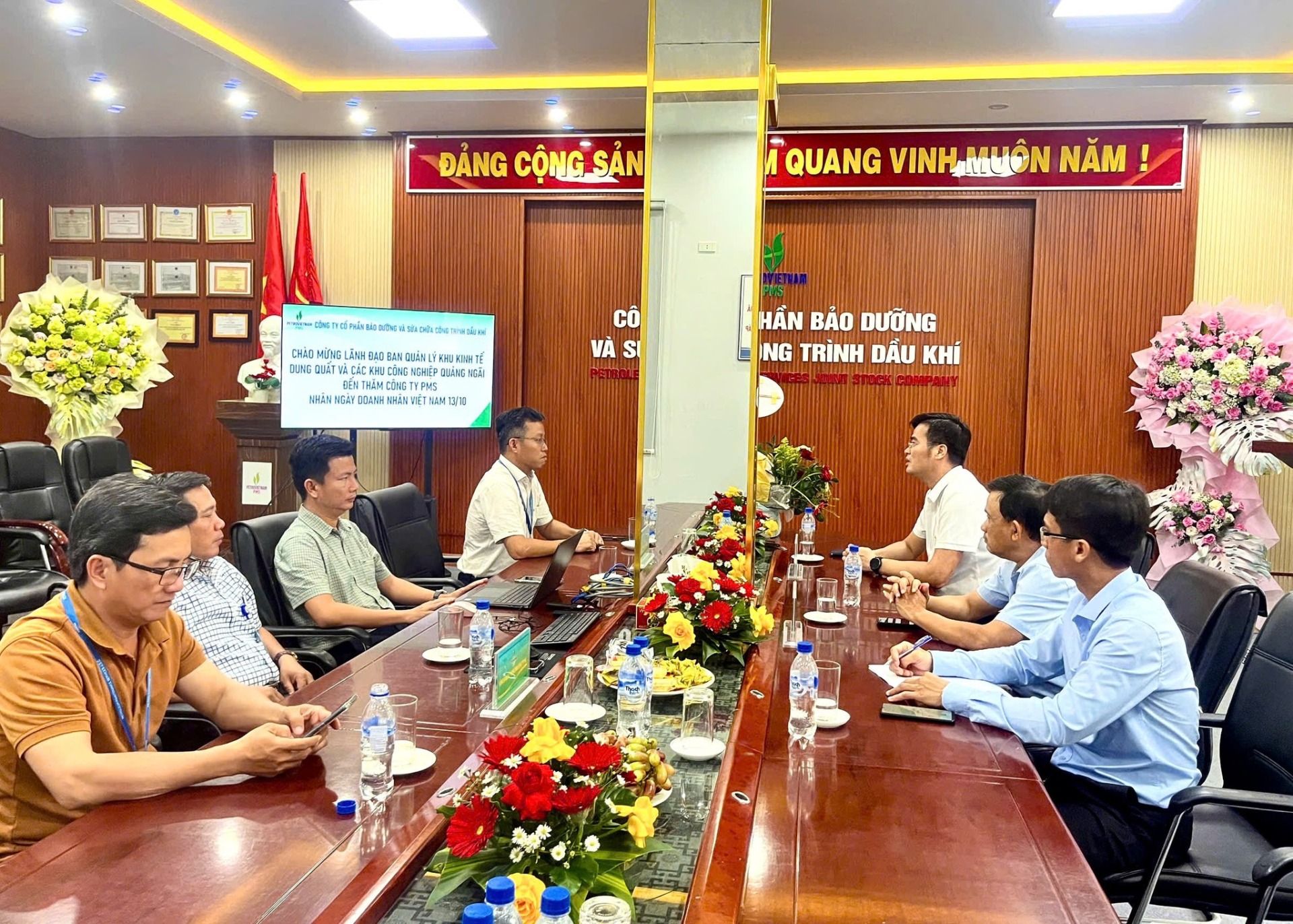 Chiều ngày 09/10/2025, Đoàn của BQL KKT Dung Quất và các KCN Quảng Ngãi do đồng chí Nguyễn Hải Trường – Phó Trưởng ban làm trưởng đoàn cùng đại diện Lãnh đạo các phòng chuyên môn đã tới thăm Công ty PMS nhân ngày doanh nhân Việt Nam.