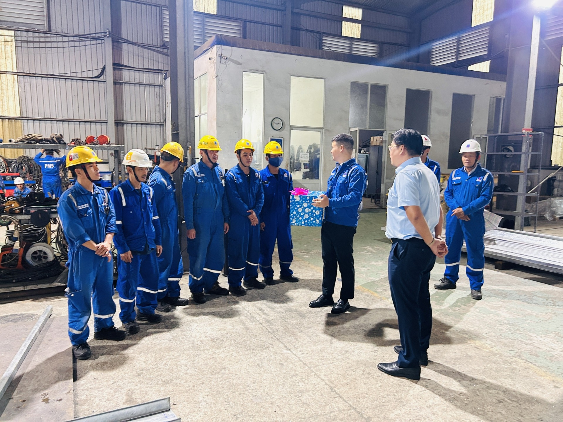 Mr. Nguyen Trung Tri - Party Secretary - Chairman of PVMR Board of Directors visited, encouraged and gave gifts to employees working at PMS Mechanical Workshop.